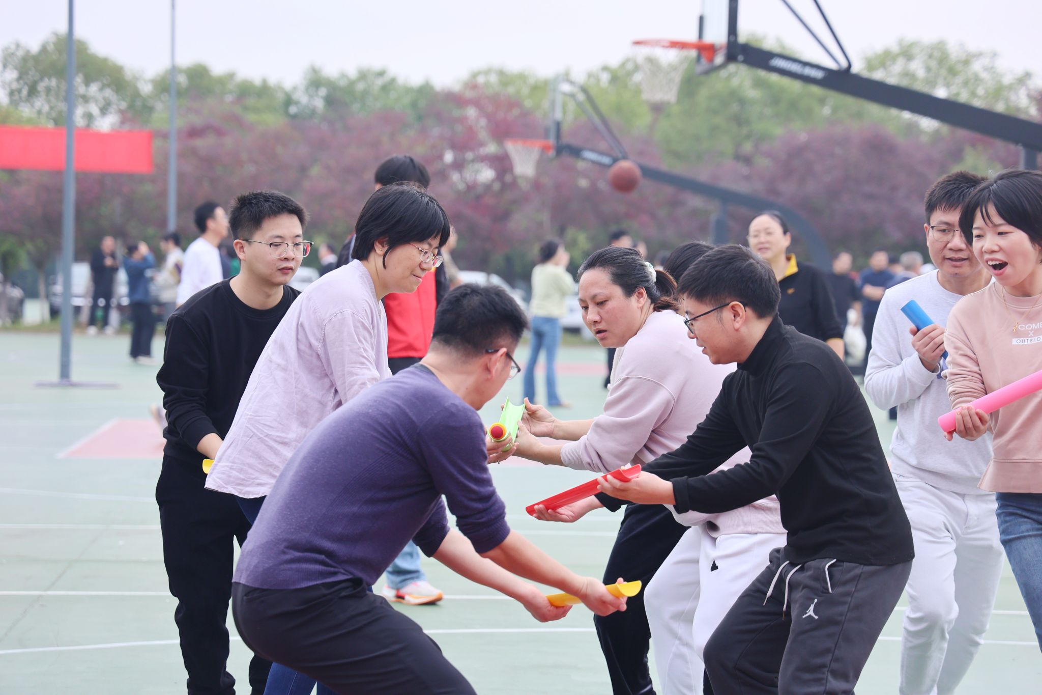 在个人项目比拼中,参赛教职工在托乒乓球跑、摸石头过河等环节中奋勇争先,不断挑战自我、展现活力。在团体项目竞赛中,各分工会队伍紧密配合、全力以赴——同心击鼓环节,大家齐心协力掌控节奏,让鼓面彩球高频弹起;接力赛中,参赛选手配合默契,接力棒无缝衔接,现场加油声、欢呼声此起彼伏,热烈氛围贯穿全程。