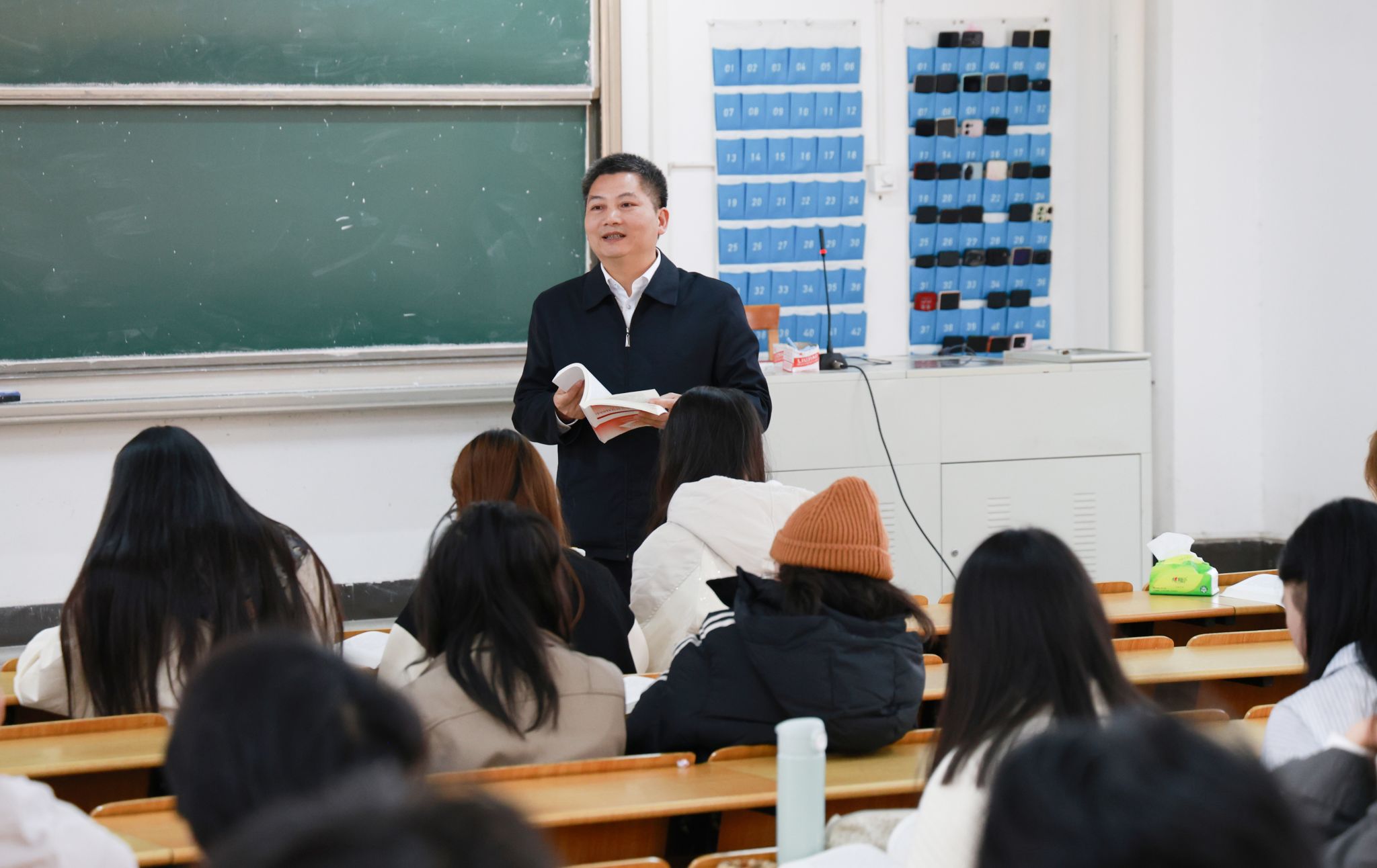 11月21日下午,校党委书记伍复康在主教学楼 C座多媒体16教室,以“建设社会主义文化强国”为主题,为2024级软件工程专业学生讲授思政课。
