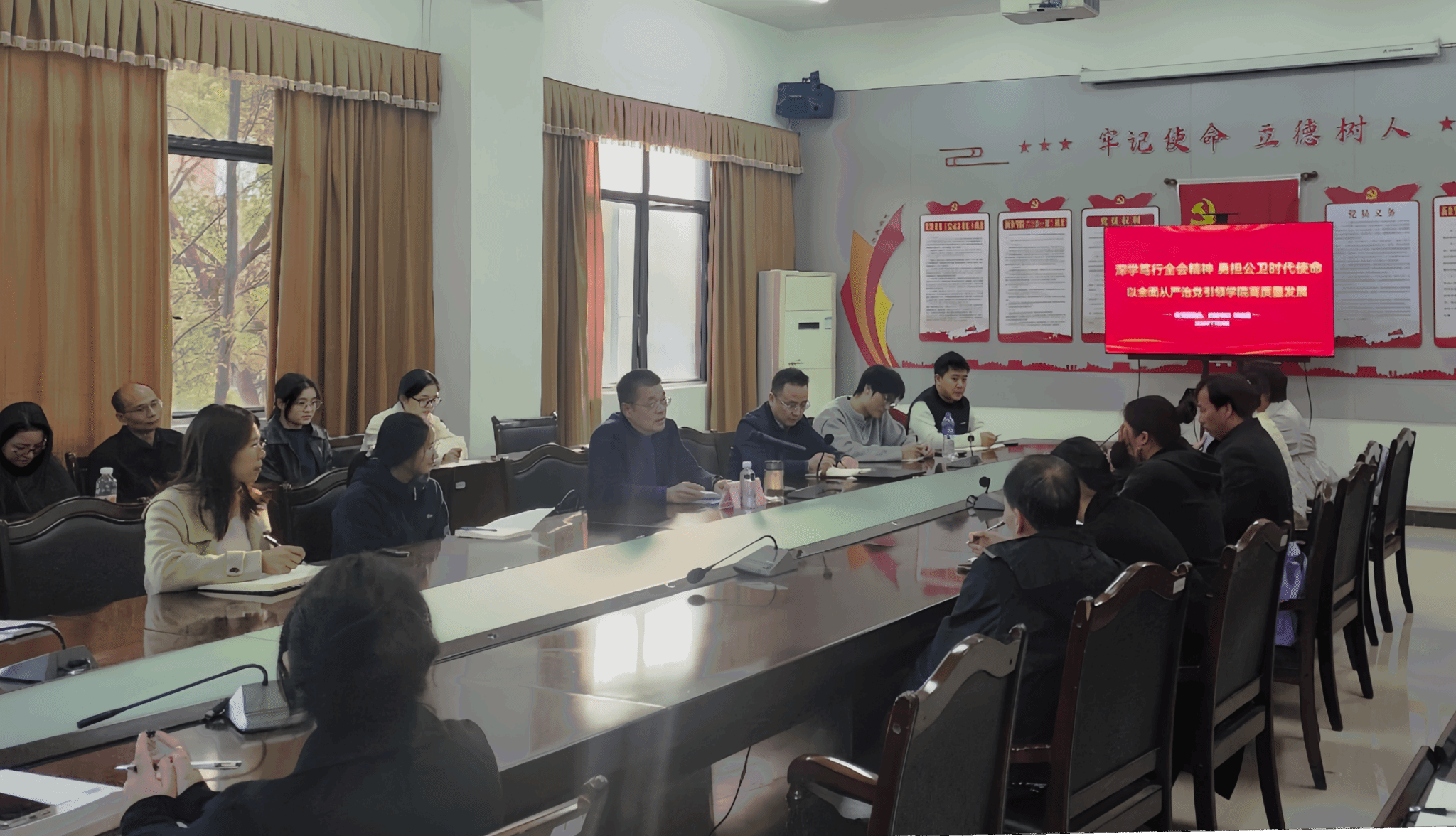 结合公共卫生与健康学院工作实际,刘志勇指出,学习全会精神,关键要把握好四个核心逻辑:一要把握文明传承的脉络,深刻认识公卫工作是“人民至上”理念的直接实践,是守护群众生命健康的第一道防线;二要把握新质生产力的引擎作用,明确公卫领域的技术创新、方法革新是推动健康中国建设的核心动力;三要把握阶段推进的坐标,认清“十五五”时期是公卫事业高质量发展的关键阶段,要承前启后、久久为功;四要把握自我革命的要求,深刻理解全面从严治党是学院事业行稳致远的根本保障,要把严的要求落实到管党治党全过程各方面,做到真管真严、敢管敢严、长管长严。学院发展要找准与全会精神的结合点,教师要在人才培养中锚定“国需”、在科研创新中聚焦“痛点”、在社会服务中彰显“专业”;学生则要筑牢专业基础、强化使命担当、树立远大志向,将个人发展融入健康中国建设实践。
