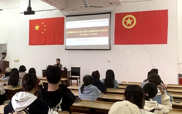 11月17日晚,马克思主义学院教师李洪运博士为该院大一新生宣讲党的二十大精神。他从大会的主题切入,围绕如何准确、全面领会党的二十大主题、过去五年和新时代十年伟大变革、马克思主义中国化、中国式现代化、全面建设社会主义现代化的目标任务等方面,对党的二十大精神进行了系统讲解和深入阐释。宣讲过程中,李老师用国际国内时事热点、重大历史事件、党的二十大代表李小英的故事等,与同学们进行分享互动。鼓励同学们把党的二十大精神贯彻到学习、生活等方面,坚定不移听党话、跟党走,做有理想、敢担当、能吃苦、肯奋斗的新时代好青年。