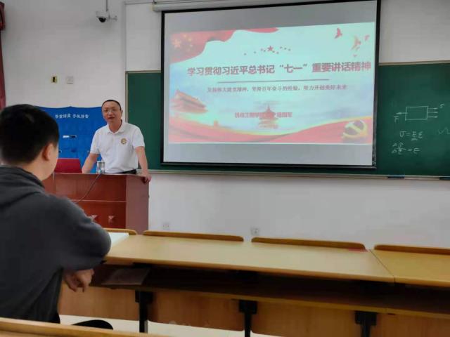 为深入学习贯彻习近平总书记“七一”重要讲话精神,10月12日,机电工程学院党委书记徐顺建、党委副书记方建新、副院长杨国军、副院长陈枭分别给联系班级作专题宣讲。