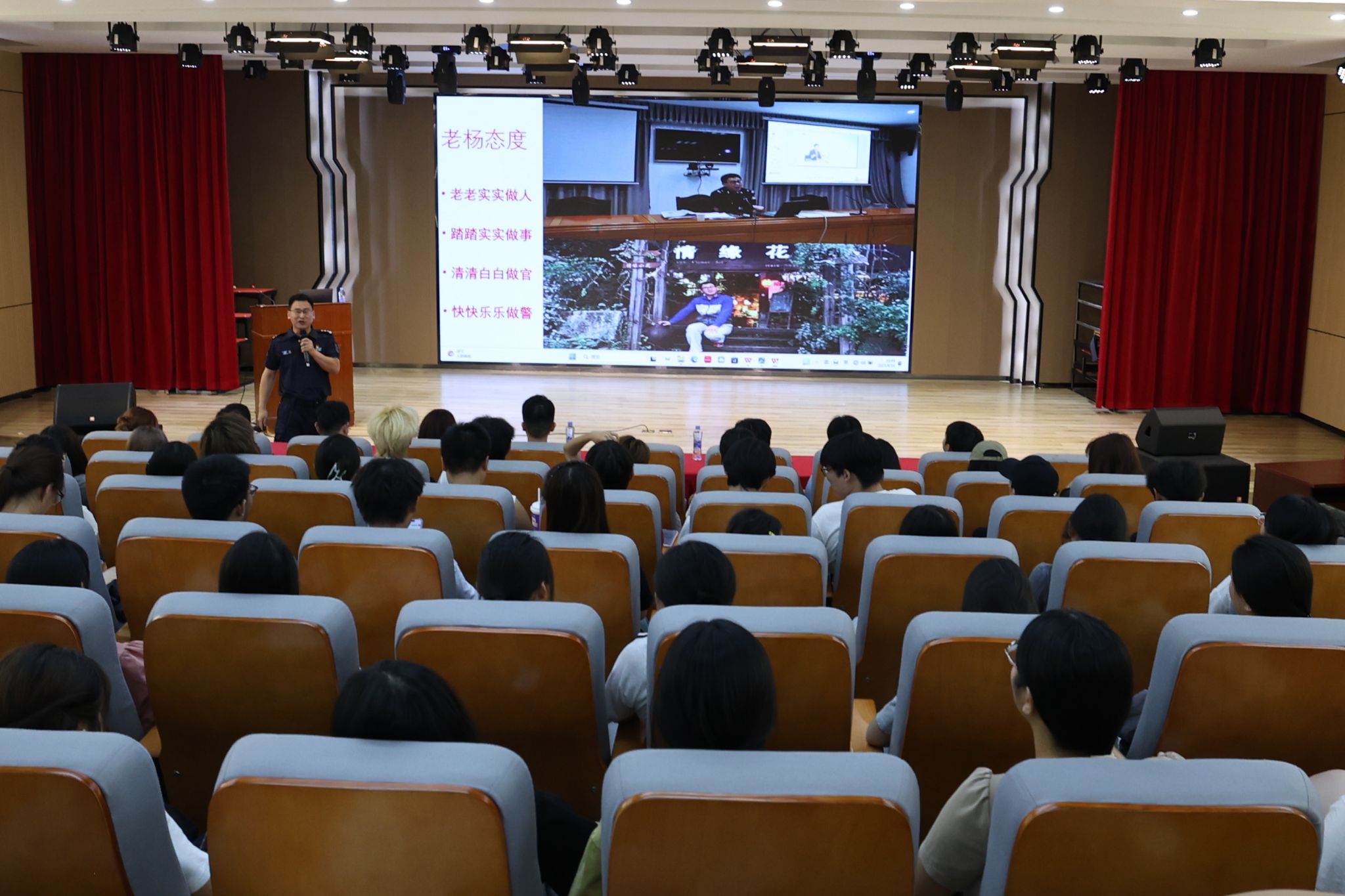 市公安局法制支队副支队长杨震国以“学习贯彻习近平法治思想,做一位尊法、学法、守法、用法的好学生”为题,围绕同学们学习生活密切相关的法律知识进行讲座,进一步提高了同学们的法治意识和法律素养,营造了尊法、学法、守法和用法的校园氛围。