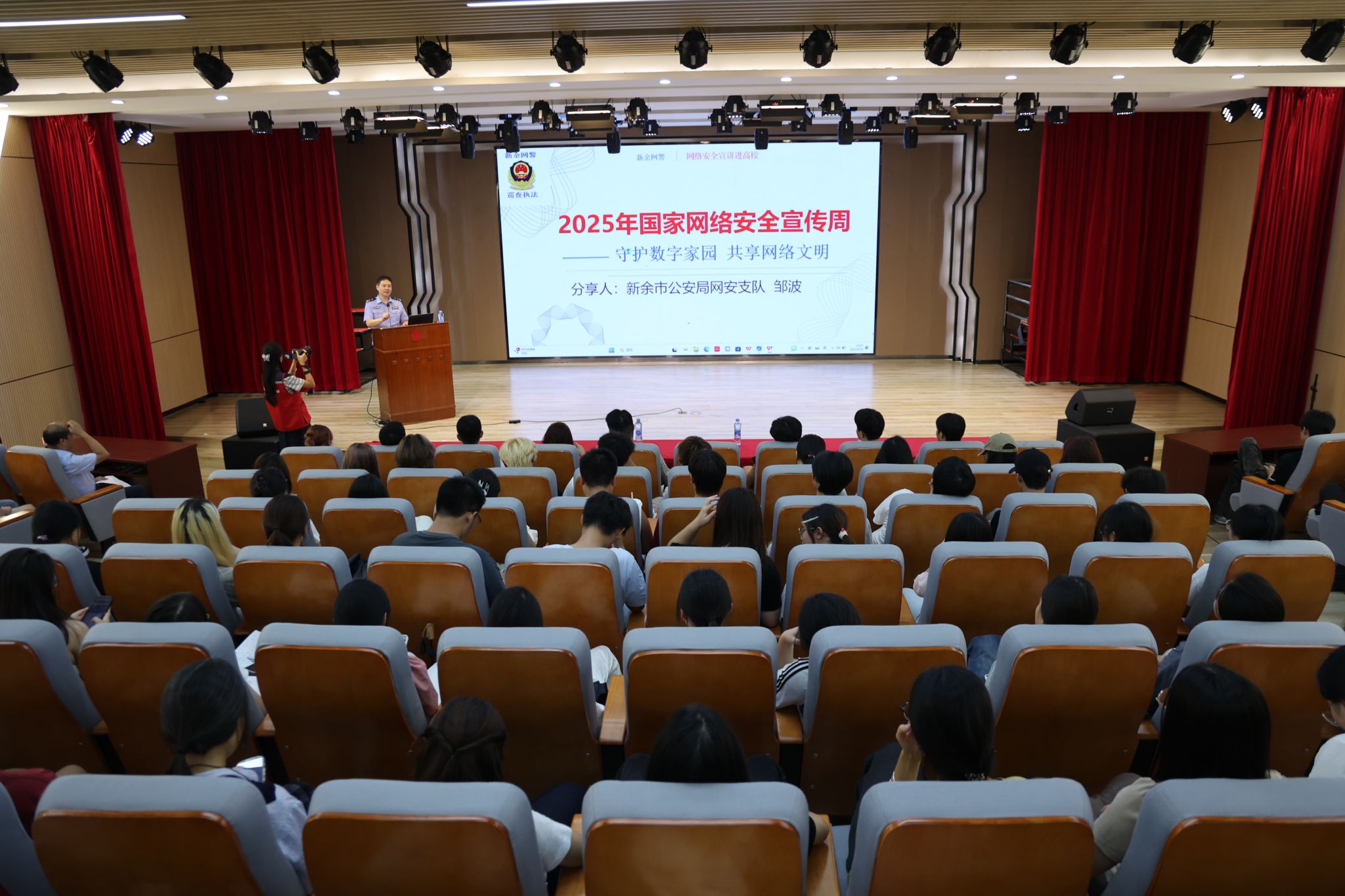 随后,市公安局网安支队副支队长邹波警官以“阳光下的守护——守护数字家园,共享网络文明”为题为师生作网络安全知识讲座。他通过大量生动鲜活的典型案例,从网络安全态势、打击整治网络谣言、常见的网络风险、文明上网和防范AI诈骗等方面,讲述了网络安全的重要性,帮助大家掌握网络安全防护技能。