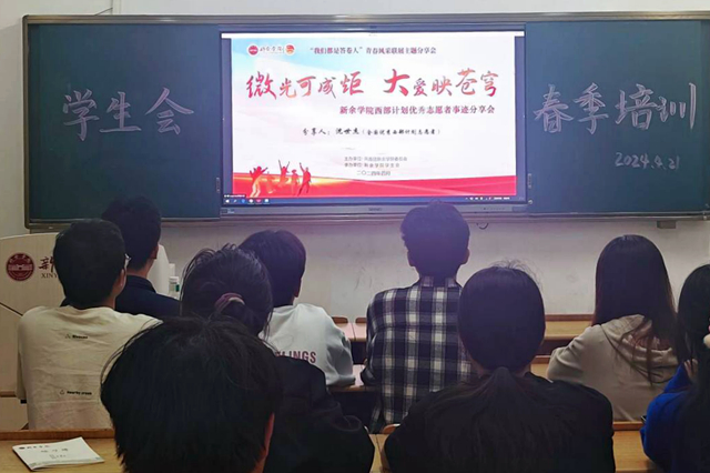 本次分享会采取线上分享、线下集中和分散收听的方式进行。分享人沈世杰从参加西部计划的想法和成为真正成为新疆地区志愿者的感受、志愿服务期间为了实现自己的志愿所做的事情、留疆的原因和工作后的思考、给学弟学妹们的建议等四个方面讲述了他在基层用心用情支教奋斗、奉献青春、服务群众的成长历程,畅谈了在服务地的所见所闻、所思所感,分享了收获的感动和快乐,并以“功成不必在我,但是功成一定有我”鼓励学弟学妹用一年不长的时间,做一件终生难忘的事,到西部去、到基层去、到祖国最需要的地方去,把个人的理想追求融入党和国家事业之中,把个人的成长进步融入与人民共同奋斗的事业之中,在基层火热实践中建功立业。