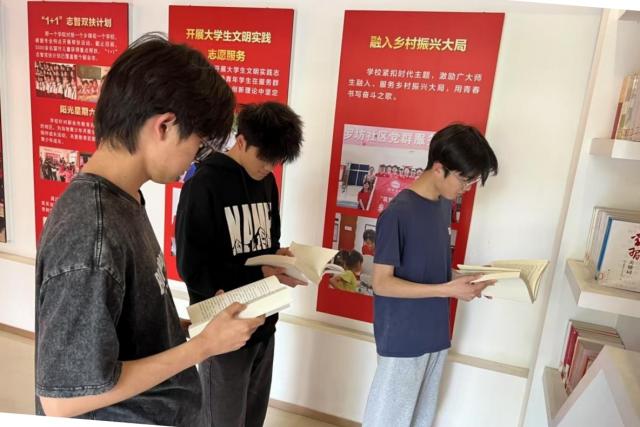 师生们通过丰富的影像、图片和实物资料,深入了解学校文明实践的成果。从“周末文化广场”的创意实践到“真人图书馆”的跨界对话,从优秀校友黎珍的自强不息故事到世界健美操锦标赛冠军张景山的拼搏传奇,一张张照片记录着新院师生用专业践行担当的身影,每个展区都传递着奋斗与热爱的力量。