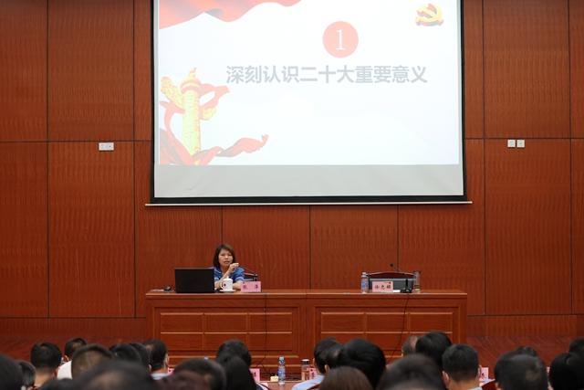 会议邀请市委党校副校长、市委宣讲团成员张萍教授作题为《谱写全面建设社会主义现代化国家新篇章》的党的二十大精神专题辅导报告。张萍教授从深刻认识党的二十大重要意义、牢牢把握党的二十大精神等方面为大家作了一堂精彩的辅导报告。报告主题鲜明、内容丰富、阐释清晰,具有很强的针对性,对于学校领导干部、党员进一步深入学习领会习近平新时代中国特色社会主义思想,全面准确把握党的二十大精神,提供了有力的指导和帮助。