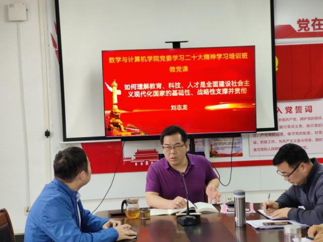 (图/数学与计算机学院 冯道明 文/数学与计算机学院 欧阳丽)近日,数学与计算机学院开展党的二十大精神专题党课和微党课。该院党委班子成员参加授课,师生党员参加听课。