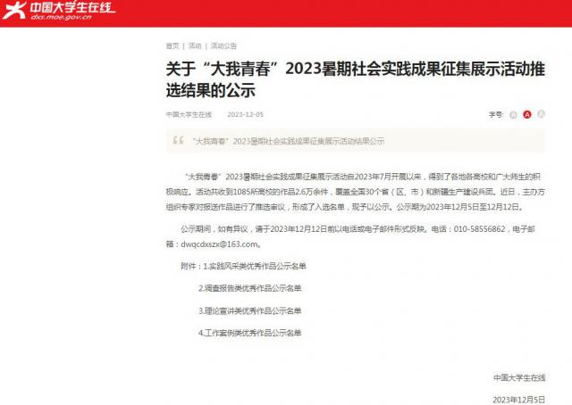近日,由教育部中国大学生在线举办的“大我青春”2023暑期社会实践成果征集展示活动结果揭晓。李鹏鹏、李丹老师指导“青春之光·学习二十大”红话筒理论宣讲实践团的《寻访先辈足迹,赓续红色血脉》获评全国理论宣讲类优秀作品。...