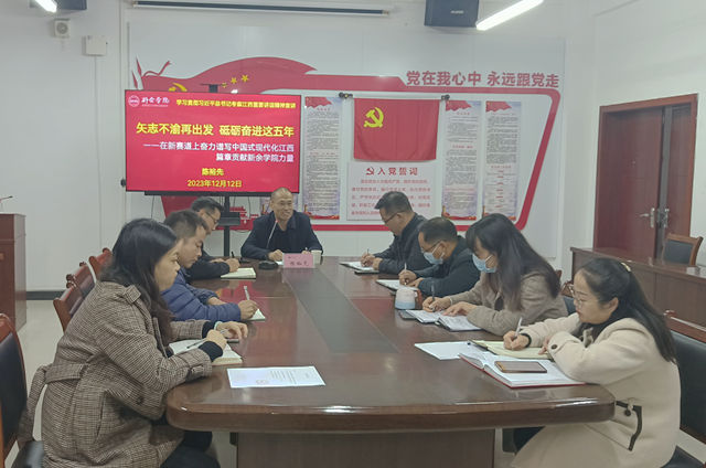12月12日下午,校党委委员、宣传部部长曾浩武深入中兴通讯信息学院开展习近平总书记考察江西重要讲话精神宣讲,学院师生参加宣讲。曾浩武从“习近平总书记再次考察江西的重大意义”“对江西发展提出的新的战略定位”“...