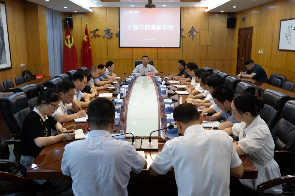 6月9日上午,学校组织召开了领导干部任前谈话会。校党委书记伍复康出席会议并讲话,会议由校党委委员、组织部部长周文生主持,新提任和交流处级领导干部参加会议。 伍复康在谈话中强调,...