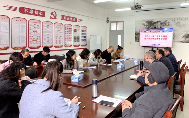 为深入学习贯彻党的十九届六中全会精神,深刻领会党的百年奋斗重大成就和历史经验,11月23日下午,马克思主义学院举行了“十九届六中全会精神融入思政课堂”集体备课会。会议由马克思主义学院院长潘欧文主持,全体思政课教师参加会议。...
