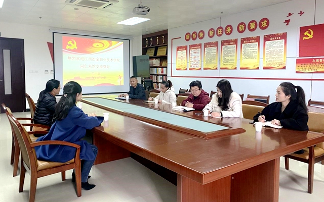 11月30日,江西冶金职业技术学院图书档案管理中心黄小勤主任一行来图书馆考察交流。图书馆馆长周辉艳、副馆长龚小华接待来访客人。座谈会上,周辉艳代表图书馆对黄主任一行的来访表示热烈欢迎,并向客人介绍了学校图书馆的基本情况、...