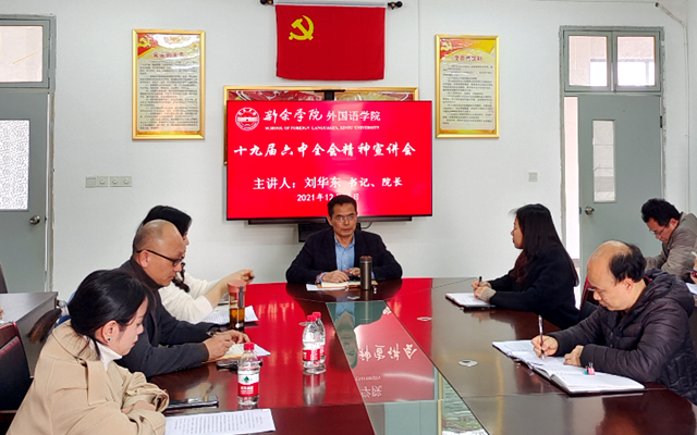 12月21日,外国语学院党委书记、院长刘华东在学院会议室开展党的十九届六中全会精神专题宣讲。该院全体教师聆听宣讲报告。刘华东以《勇担当,善作为,以十九届六中全会精神指引学院高质量发展》为题,重点阐述了从深刻认识党的百年奋斗的重大历史成就和历史经验的重大意义、...