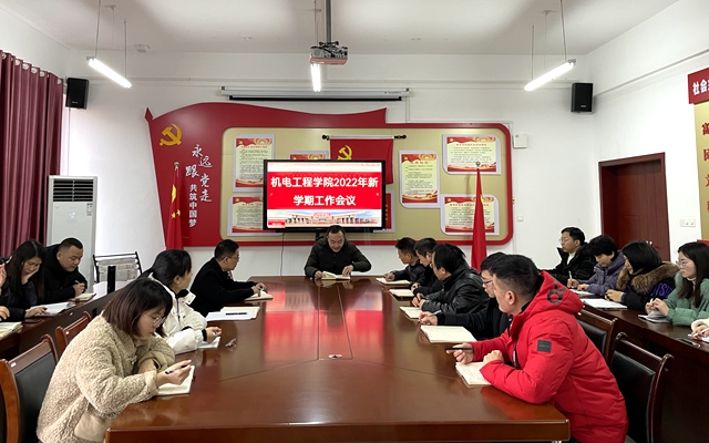 新学期迎来新气象,新起点开启新征程。2月18日下午,机电工程学院2022年新学期工作布置会在学院党员活动室召开,会议由该院党委书记、院长徐顺建主持,全体行政坐班教师参加会议。徐顺建传达了学校关于新学期工作的总体要求和工作部署,...