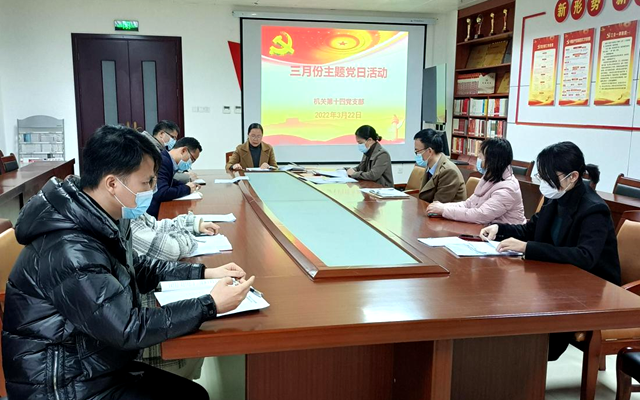 3月22日,机关第十四党支部在图书馆党员活动室开展了3月份主题党日活动。会议由支部书记周辉艳主持。会上,大家集中学习了习近平总书记在中共中央政治局第三十六次集体学习上、在二〇二二年春节团拜会上的重要讲话精神,...