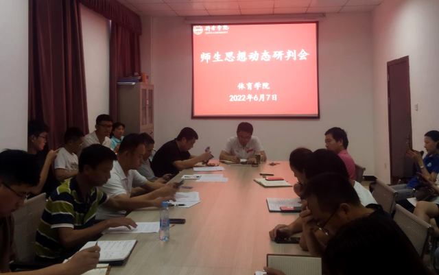 6月7日,体育学院组织召开2022年上半年意识形态研判工作会议。该院全体教师参与本次会议,汇报交流该院意识形态工作责任制落实情况,总结经验,分析研判,推进该院意识形态工作任务落实。该院党委书记、院长傅超主持会议。...