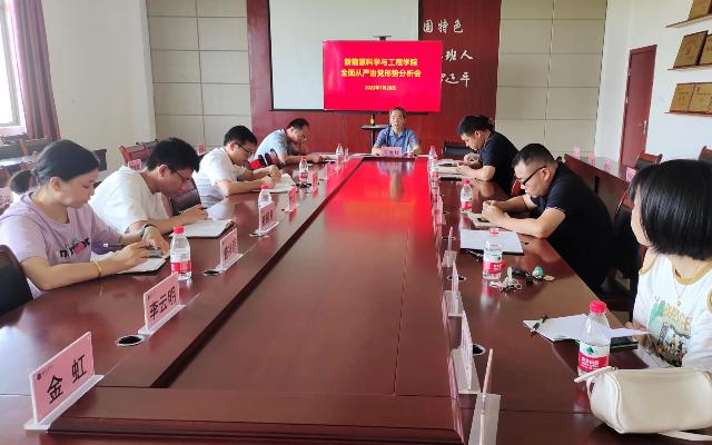 (文/图 新能源科学与工程学院 章娟)为深入贯彻落实全面从严治党要求,切实抓好党的政治、思想、组织、作风和党风廉政建设,推进全面从严治党工作向纵深发展。7月20日,新能源科学与工程学院在会议室召开2022年全面从严治党形势分析会,...