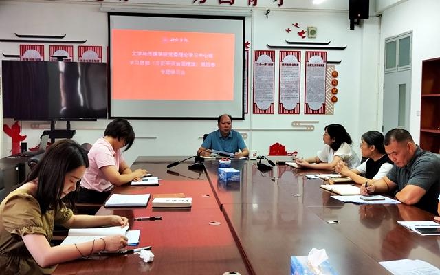 (图/文 文学与传媒学院 余青)为进一步学深悟透做实习近平新时代中国特色社会主义思想,在前期认真研读学习的基础上,近日,文学与传媒学院通过党委中心组学习、全院教师例会、支部主题党日等形式组织专题学习《习近平谈治国理政》...