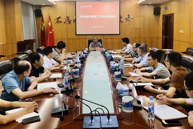 近日,学校在行政楼二楼会议室召开学科建设暑期工作动员部署会议。校党委委员、副校长陈裕先主持会议并讲话,发展规划与学科建设处负责人、各二级学院院长参加会议。 陈裕先就暑期即将开展的暑期赴广东高校考察学习活动,...
