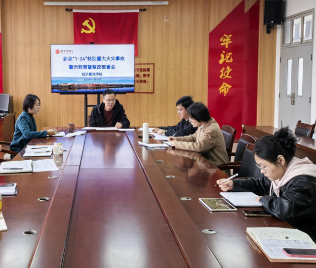 为深刻吸取事故教训,确保师生安全,经济管理学院于11月25日上午在学院会议室召开了关于新余“124”特别重大火灾事故警示教育暨整改布置会。 会议由学院党委书记王茂洋主持,他指出,新余“124”特别重大火灾事故,...