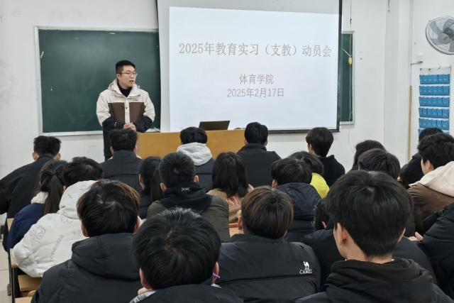 2月17日,体育学院召开2025年教育实习(支教)动员大会,全面部署教育支教工作。会议由该院负责人主持,全体参与支教的学生及带队指导老师参加会议。 会上,详细介绍了本次实习工作的目标任务、组织保障、...