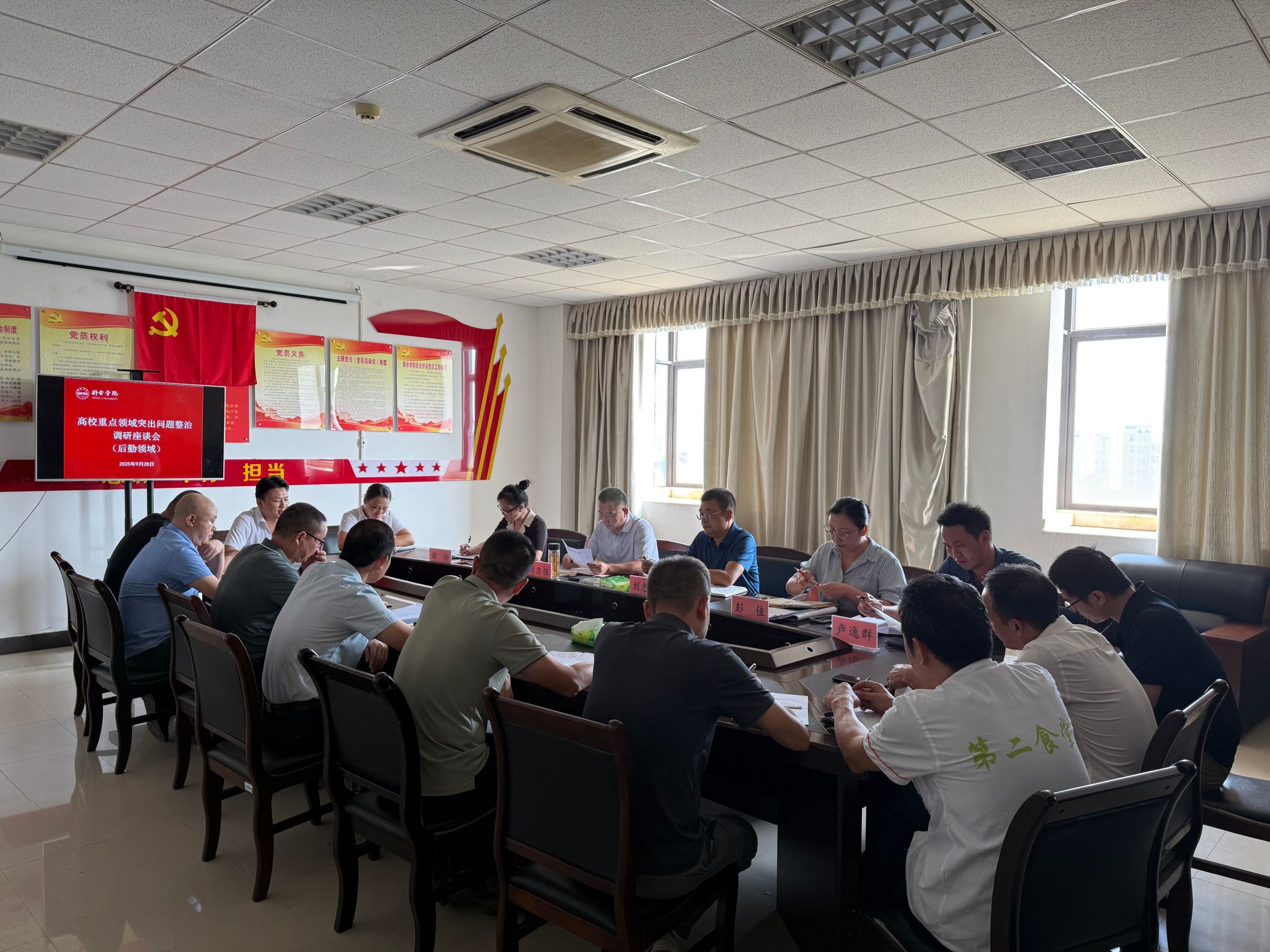 为深入贯彻中央八项规定精神学习教育,全面推动学校重点领域突出问题系统整治走深走实、见行见效,9月28日下午,学校组织召开高校重点领域突出问题整治工作调研座谈会(后勤管理、招标采购领域)。校党委委员、纪委书记刘志勇,校党委委员、副校长刘力恒出席会议并讲话,相关单位负责人及工作人员参加会议。会上,校领导详细了解了后勤处、招标采购中心、第一食堂、第二食堂、医务室等责任单位专项整治工作的开展情况及下一步工作打算。...